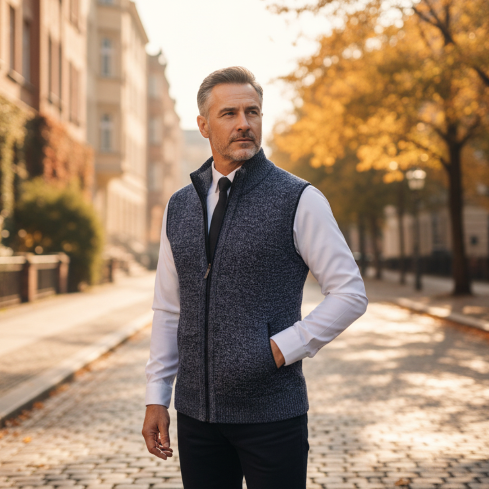 Wenn die Luft anfängt, kühler zu werden und du nach einer Schicht suchst, die wärmt, ohne aufzutragen, wird Die Levan Strickweste dein bester Begleiter. Ihre leichte Struktur und das klare Design bieten dir umhüllenden Komfort, ohne die Eleganz zu verlieren. Ideal über einem Hemd für deine Arbeitstage oder unter einem Mantel für deine Wochenend-Ausflüge.